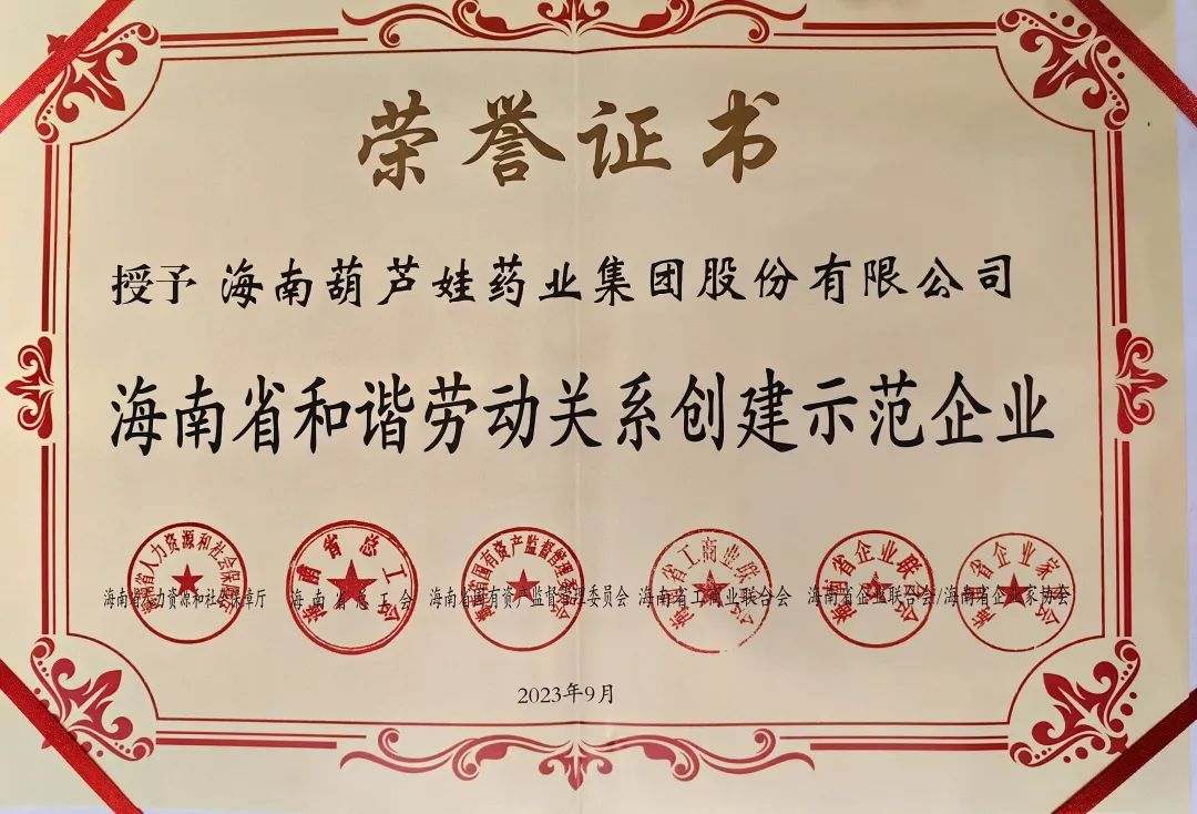 PG国际药业集团获评“海南省和谐劳动关系创建示范企业”